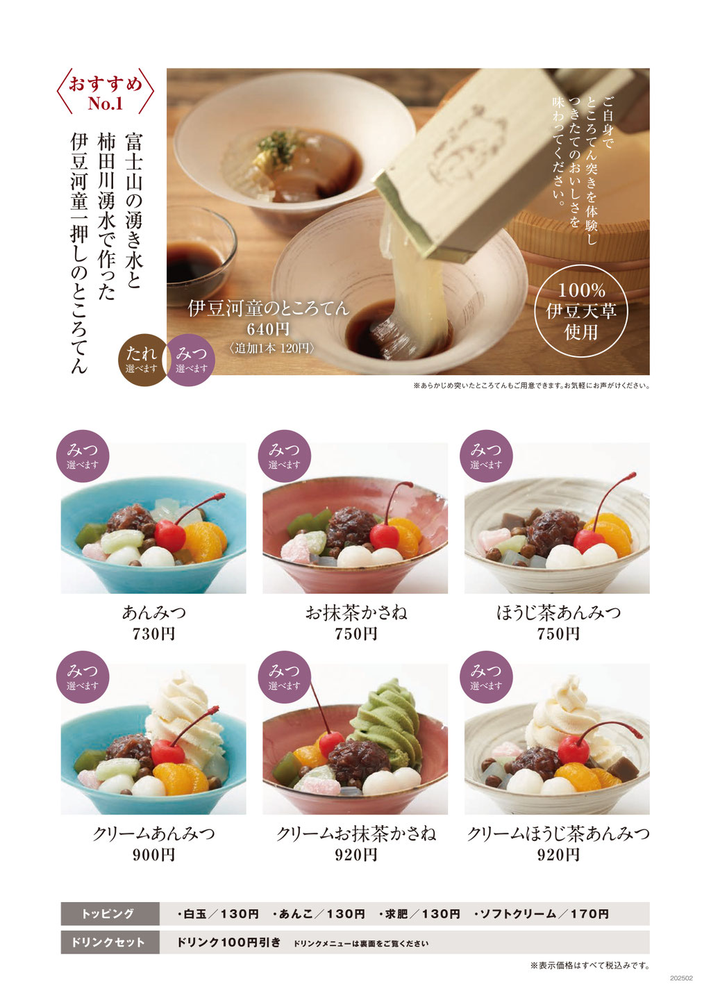 ところてんはもちろん、あんみつなど、ほっと一息できる三島の安らぎの場所を作っていきます。